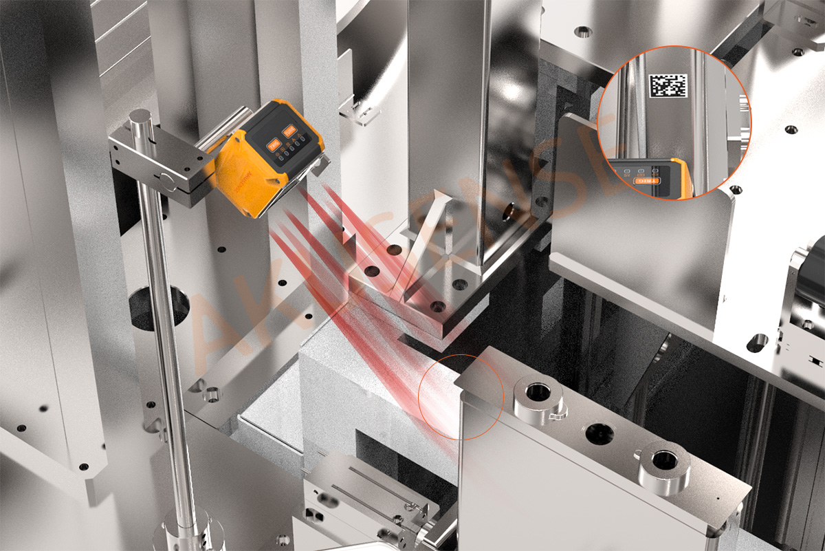 此處需要將電池反轉(zhuǎn)90度,同時需要進(jìn)行對二維碼的識別,便于記錄和追溯。采用新型RCD-AI100-120W智能讀碼器,支持識別不同材質(zhì)的DPM碼,在條碼受損、對比度低、印刷 質(zhì)量差等復(fù)雜情況下也能有效讀碼,4組光源獨(dú)立控制,支持多種光線角度組合、光度靈活配置,提供偏振選項(xiàng),輕松應(yīng)對復(fù)雜場景下的讀碼需求。