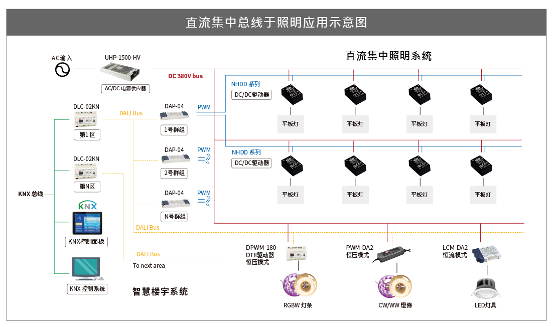 由于再生能源已是未來發(fā)展趨勢,因此DC House不再只是一個概念,而是必要的基礎(chǔ)設(shè)施。因此,如何提高電力轉(zhuǎn)換效能在交流電轉(zhuǎn)換直流電,或直流電轉(zhuǎn)換交流電都是不可忽視的議題。明緯將以此為出發(fā)點,引領(lǐng)成為直流供電室內(nèi)應(yīng)用先驅(qū),定義新的直流集中供電照明應(yīng)用方式,以達到降低功率轉(zhuǎn)換過程的損失。