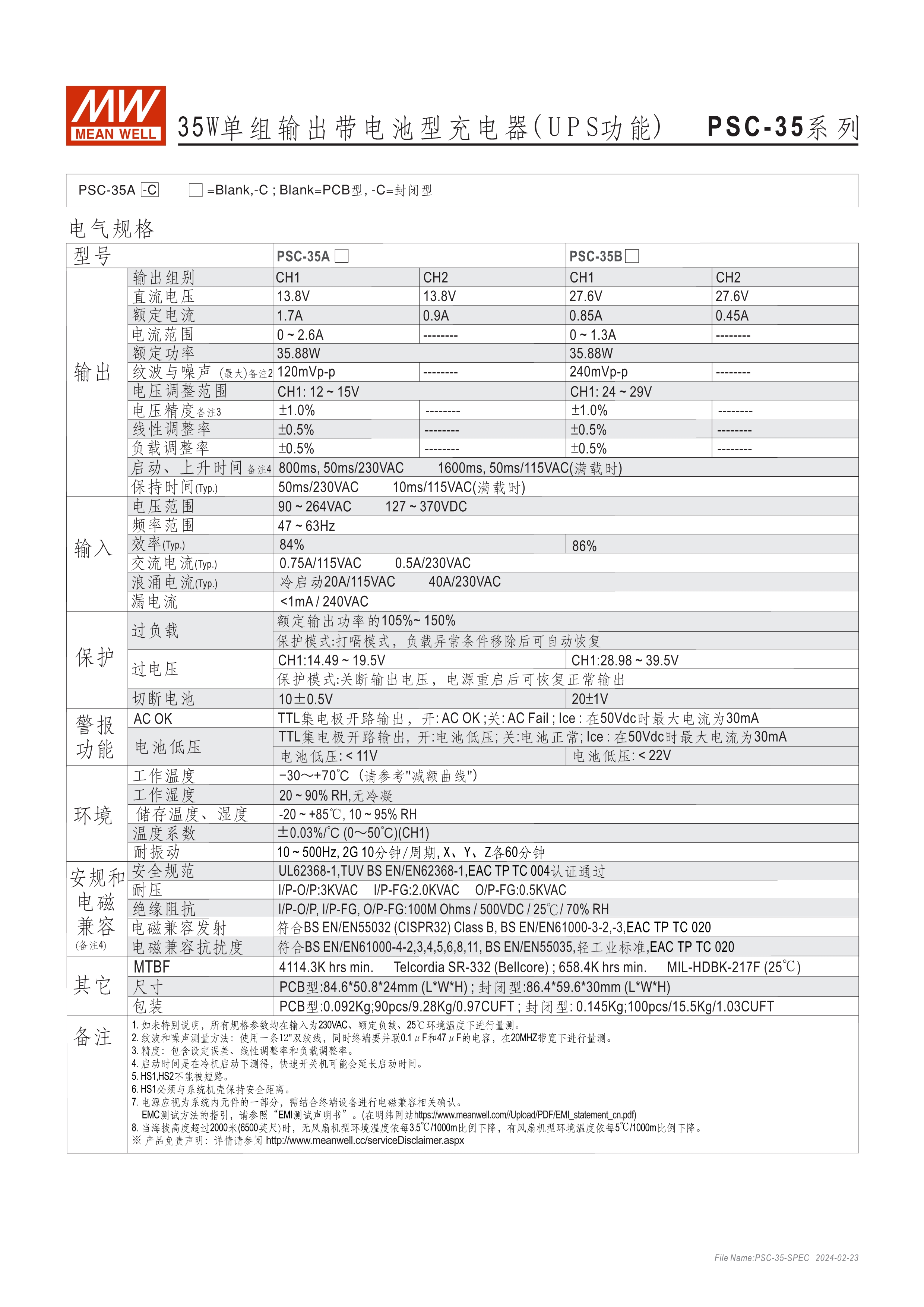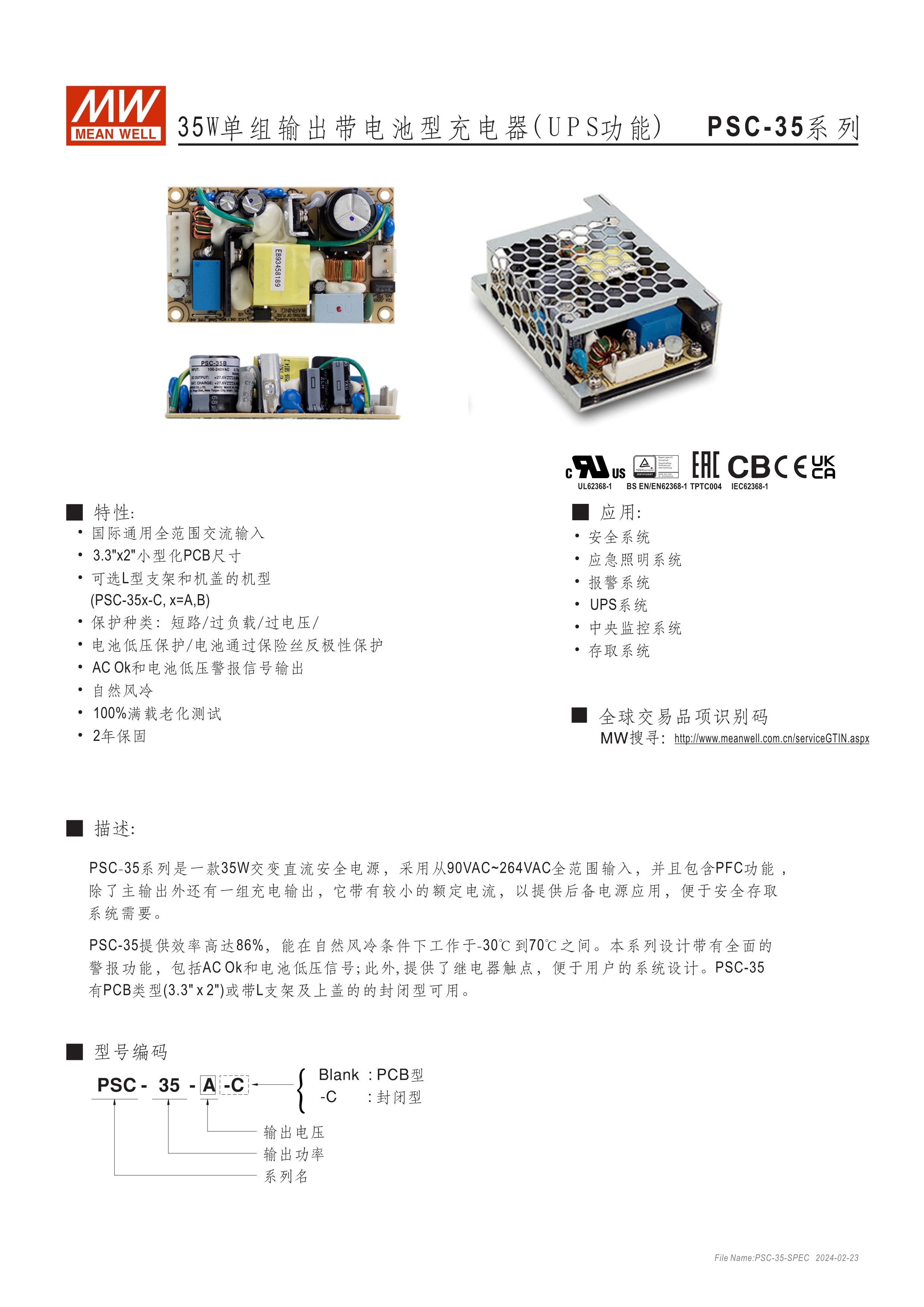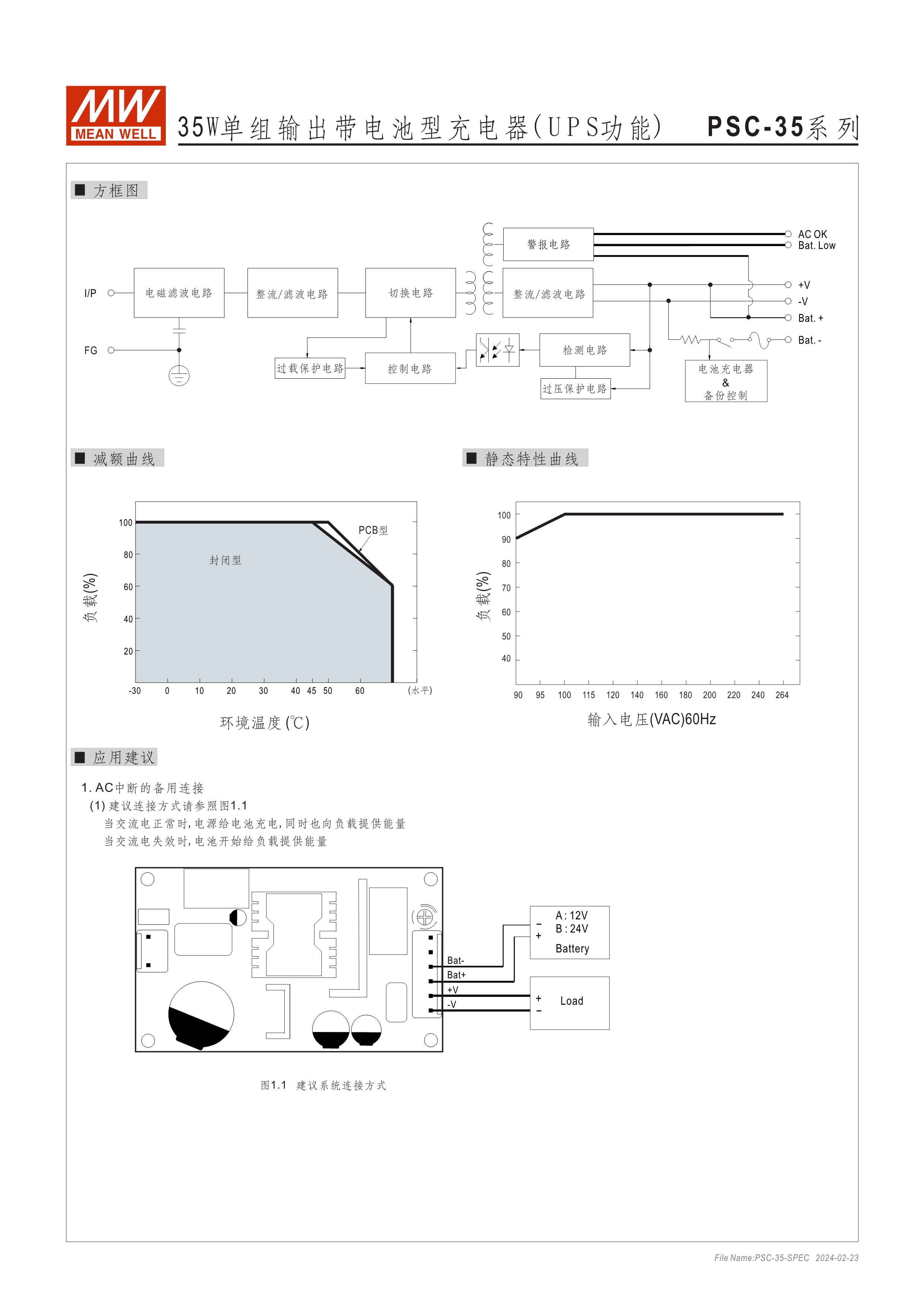 具UPS 功能(需外接電池) 適合用于安全監(jiān)控設(shè)備或各式電池備援系統(tǒng) PSC-160內(nèi)建主動(dòng)式功率因子矯正功能(active PFC) 亦可提供機(jī)殼型