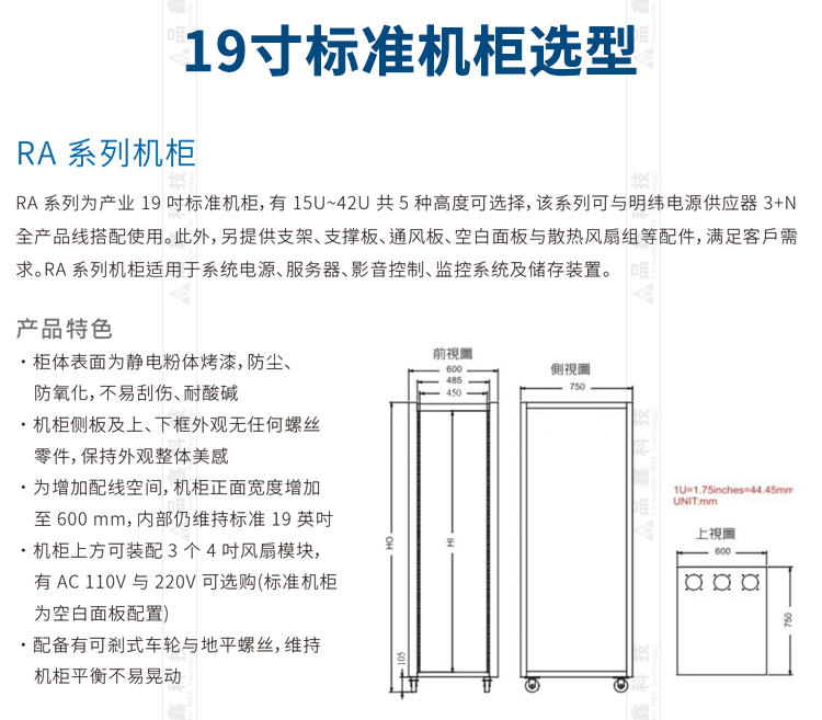 RA系列明緯聯(lián)源精密19寸標準機柜電源機柜15U~42U5種高度