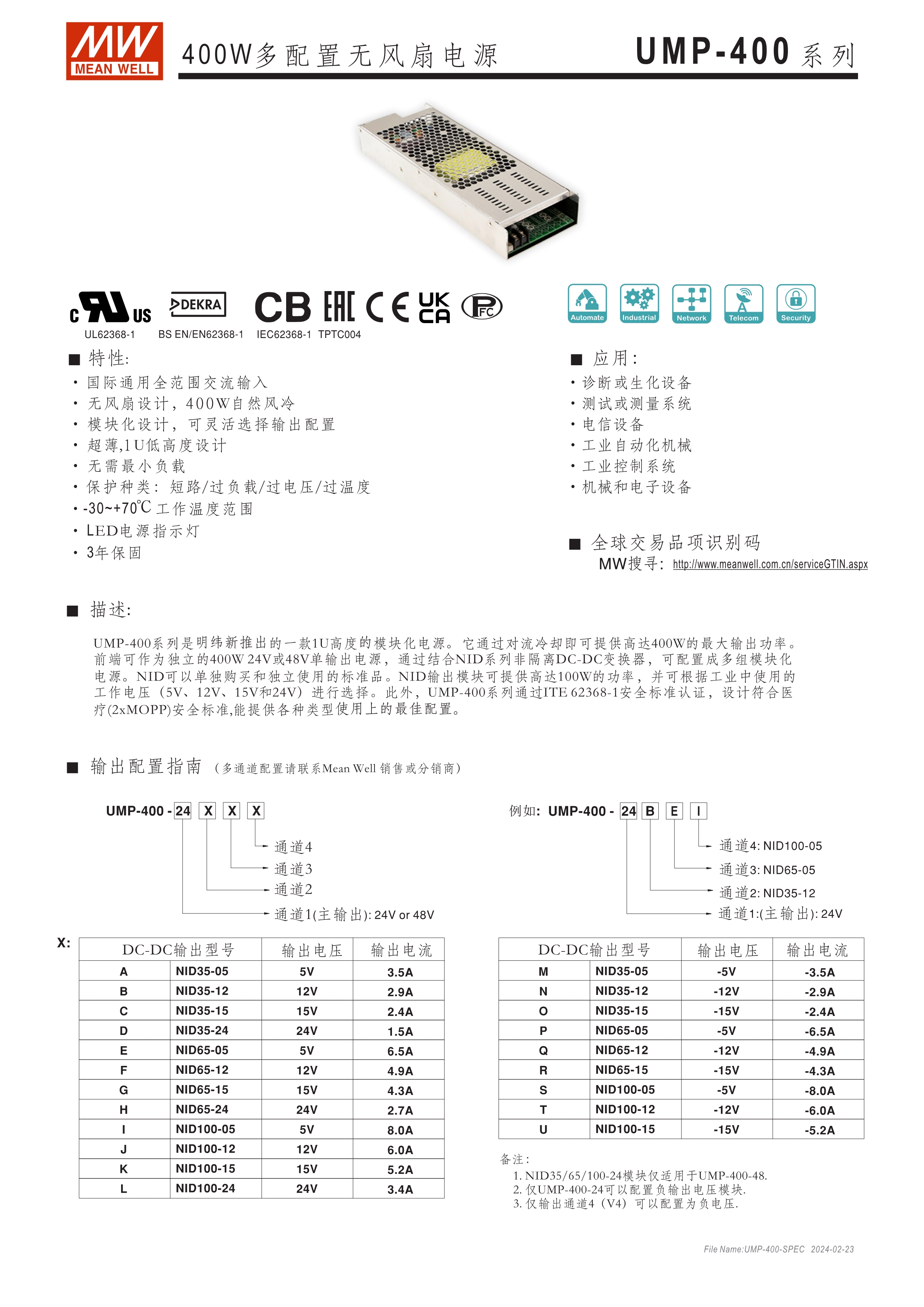 無風扇薄型化設計,機身高度低于1U,適合封閉型無對外散熱之工控/醫(yī)療設備 可單機單路輸出,有可選用 采模塊化設計,亦可搭配DC-DC模塊卡(NID35/65/100系列機種) 提供多路輸出電壓 采無風扇設計 不須外加散熱傳導底板可操作于-30~+70°C° 符合OVCIII要求 可操作在高海拔5000米 設計符合2x MOPP絕緣等級,適合BF rated醫(yī)療設備使用