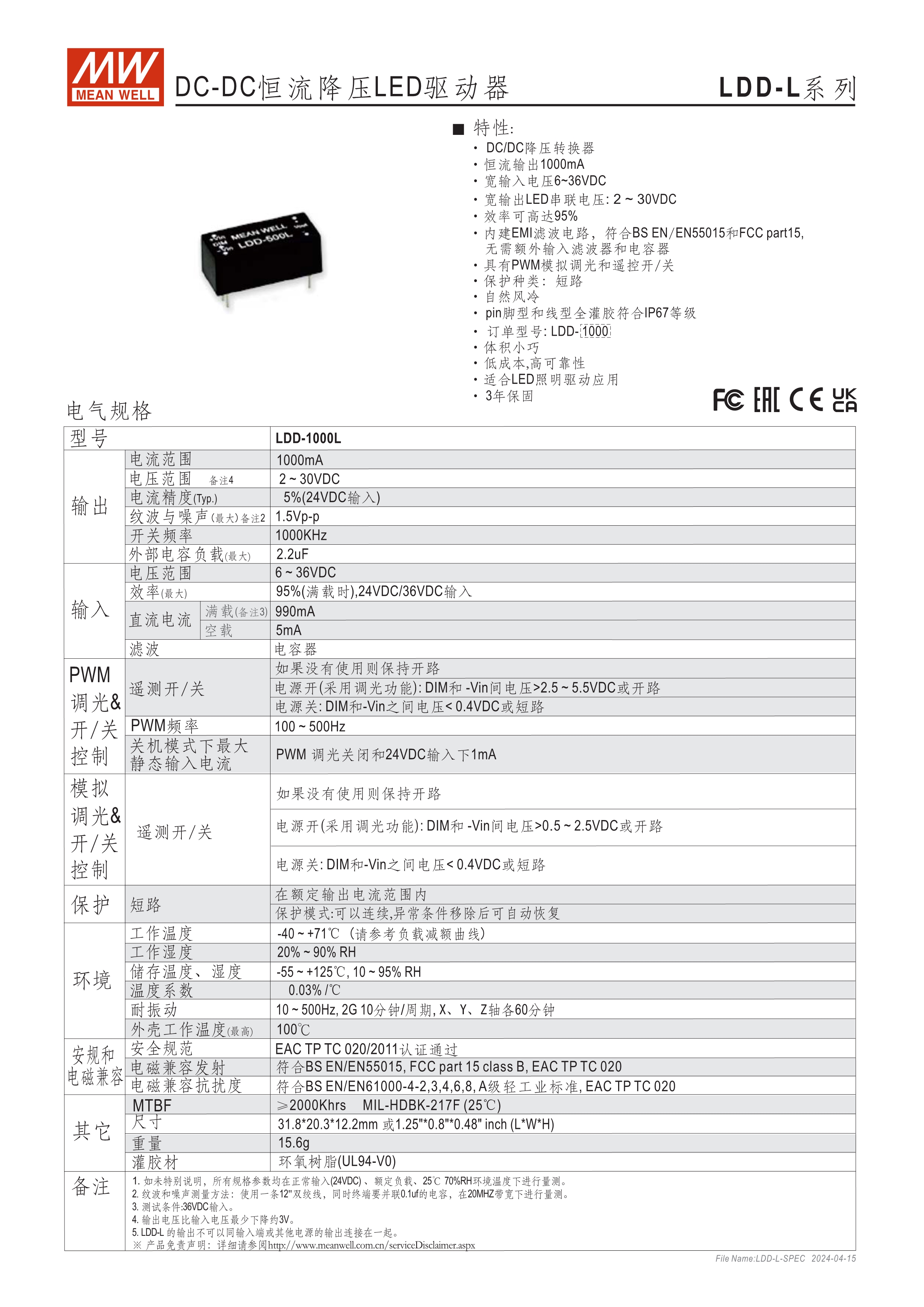 DC/DC降壓式恒流輸出LED驅動器 最高達97%超高效率 內建PWM+模擬調光功能及開/關遙控功能 IP67防護等級 3年保固 具備插pin及出線兩種型式