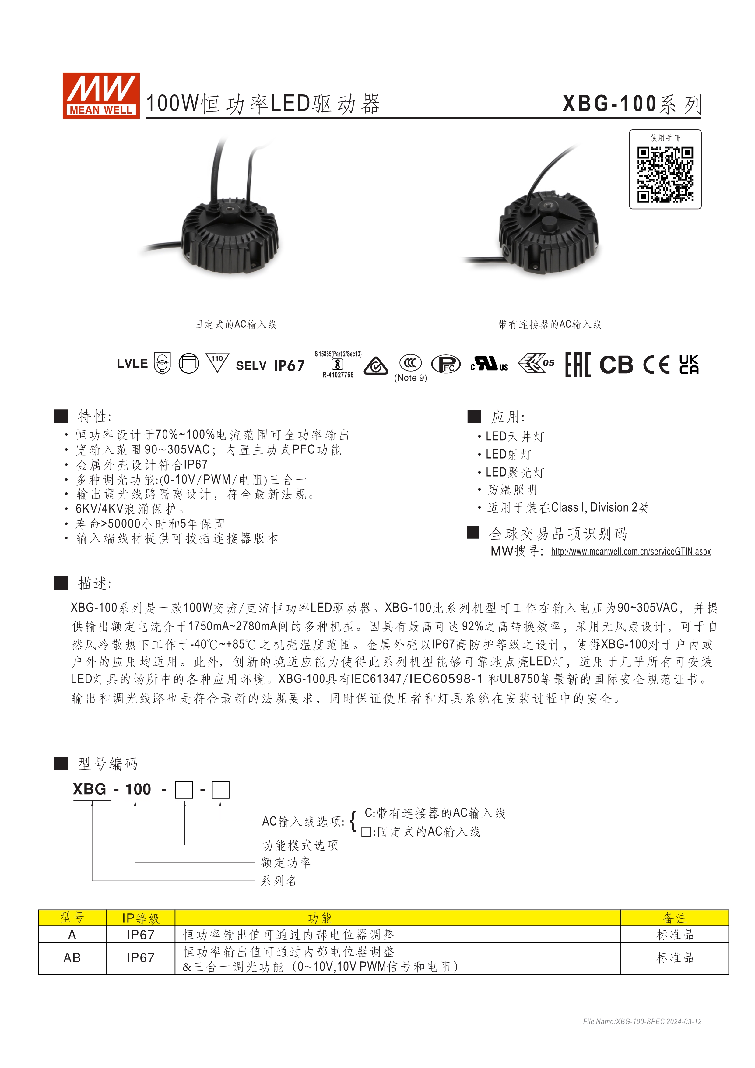 寬電壓范圍100~305VAC交流輸入 主動式PFC及定功率恒流設(shè)計 輸入線材增加防水接頭方便使用 雷擊保護(hù)設(shè)計:6KV/4KV 保護(hù)種類:短路、過電壓、過溫度 產(chǎn)品壽命>50,000 hrs and 5年保固