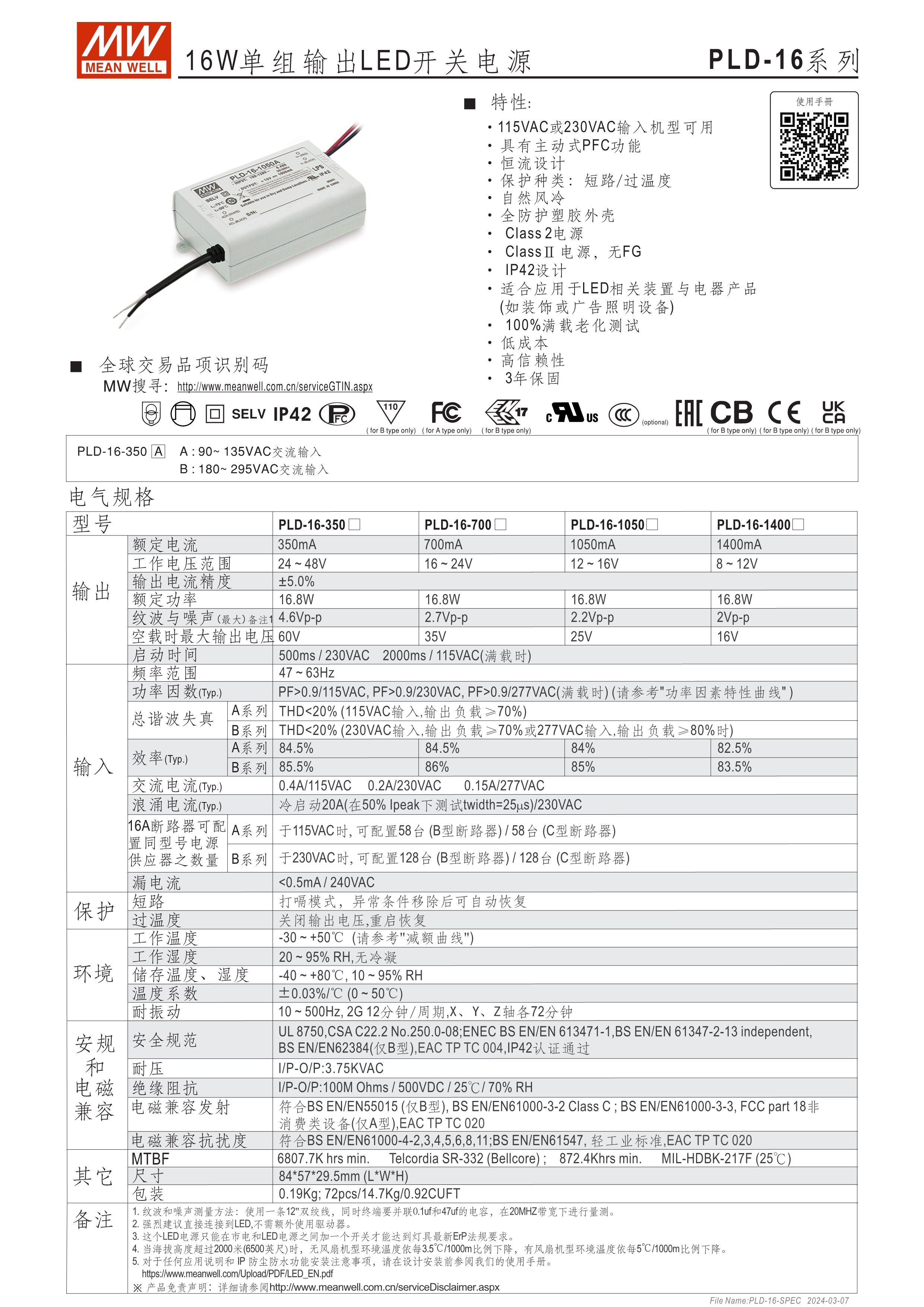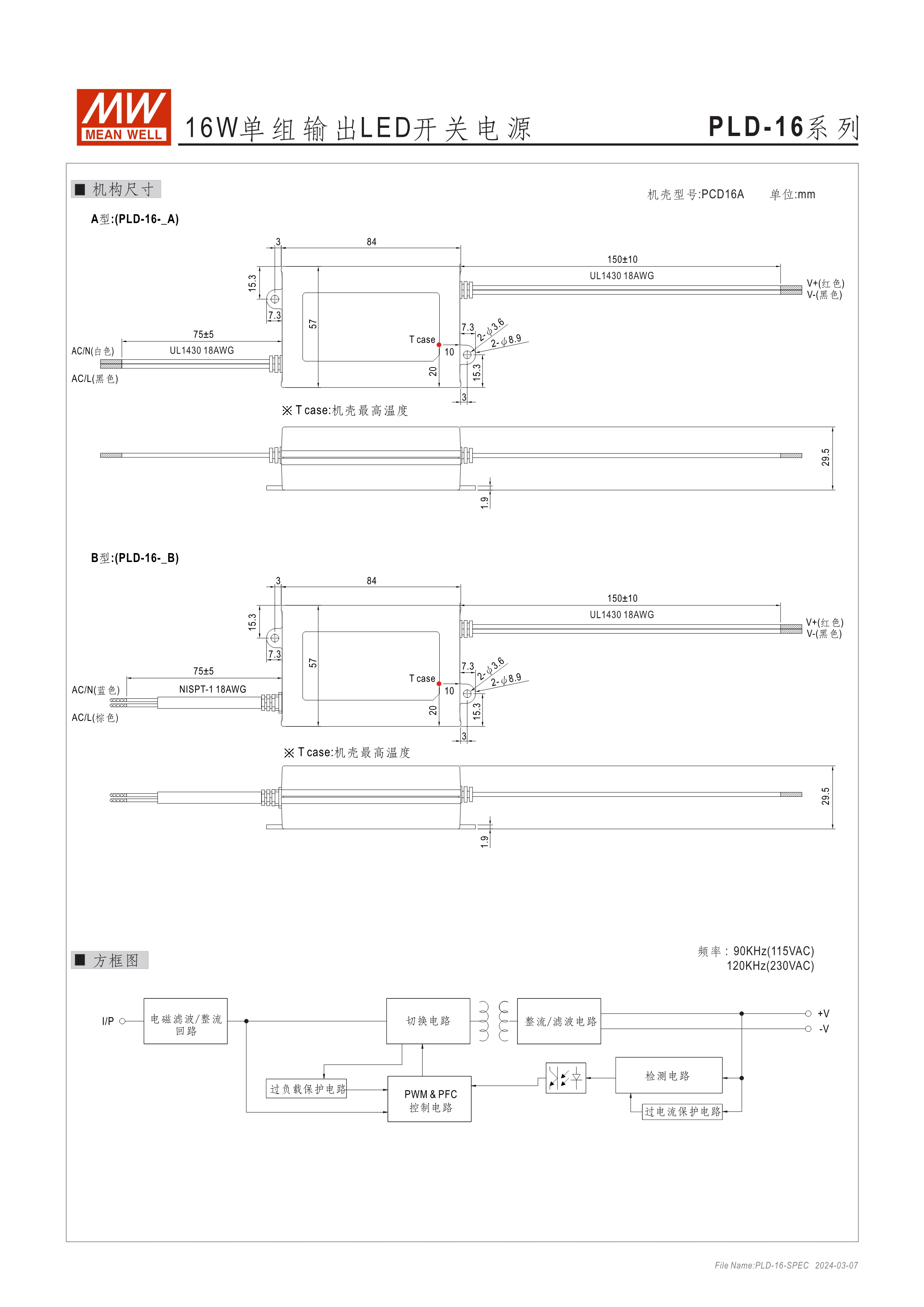 16W: 90~135VAC或180~295VAC 25W: 90~295VAC 40/60W: 180~295VAC 內(nèi)建主動式功率因子矯正功能(active PFC) 塑料外殼,IP42防護(hù)等級 Class II設(shè)計(jì),無FG 恒流設(shè)計(jì) 適合于LED室內(nèi)照明相關(guān)應(yīng)用