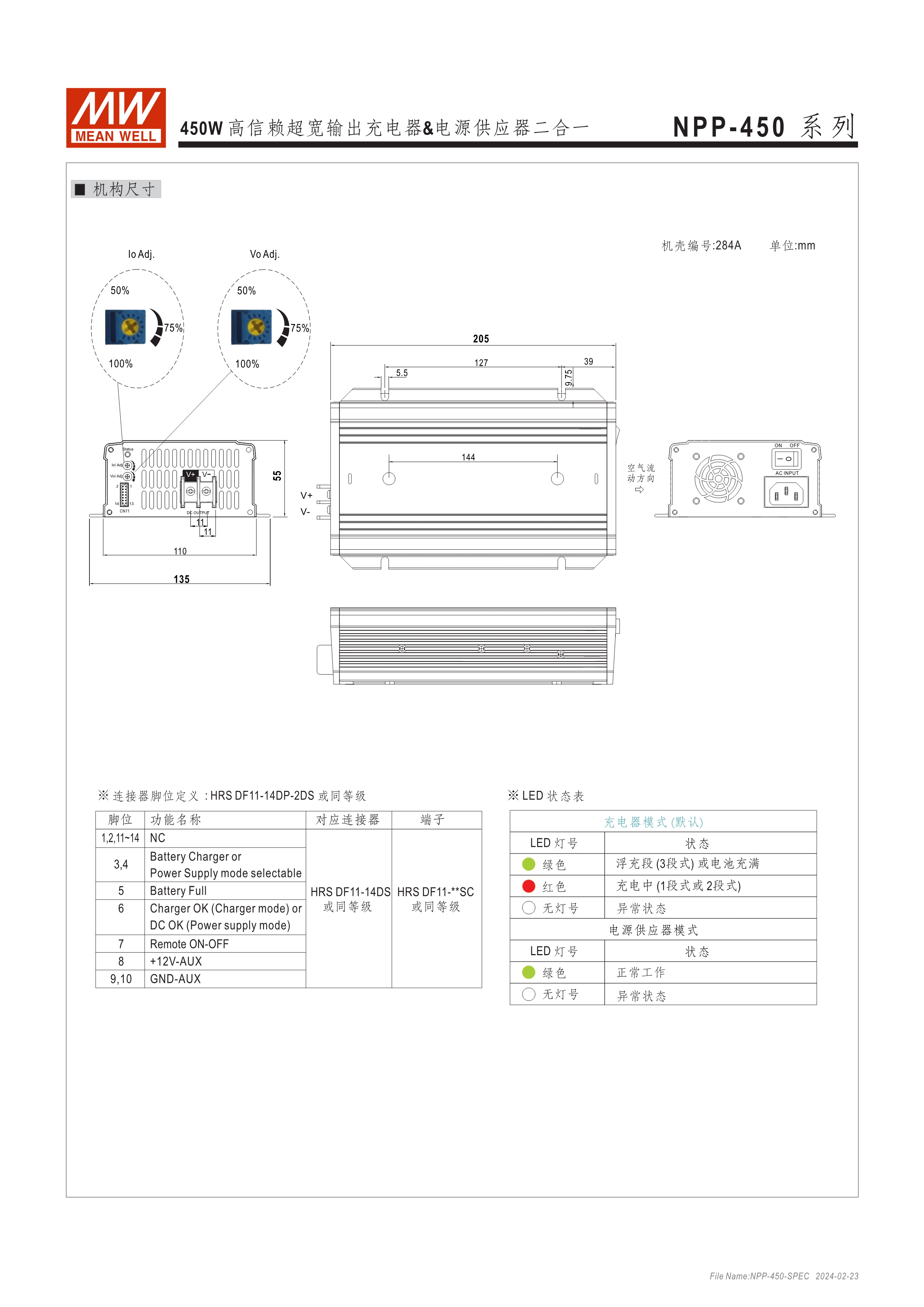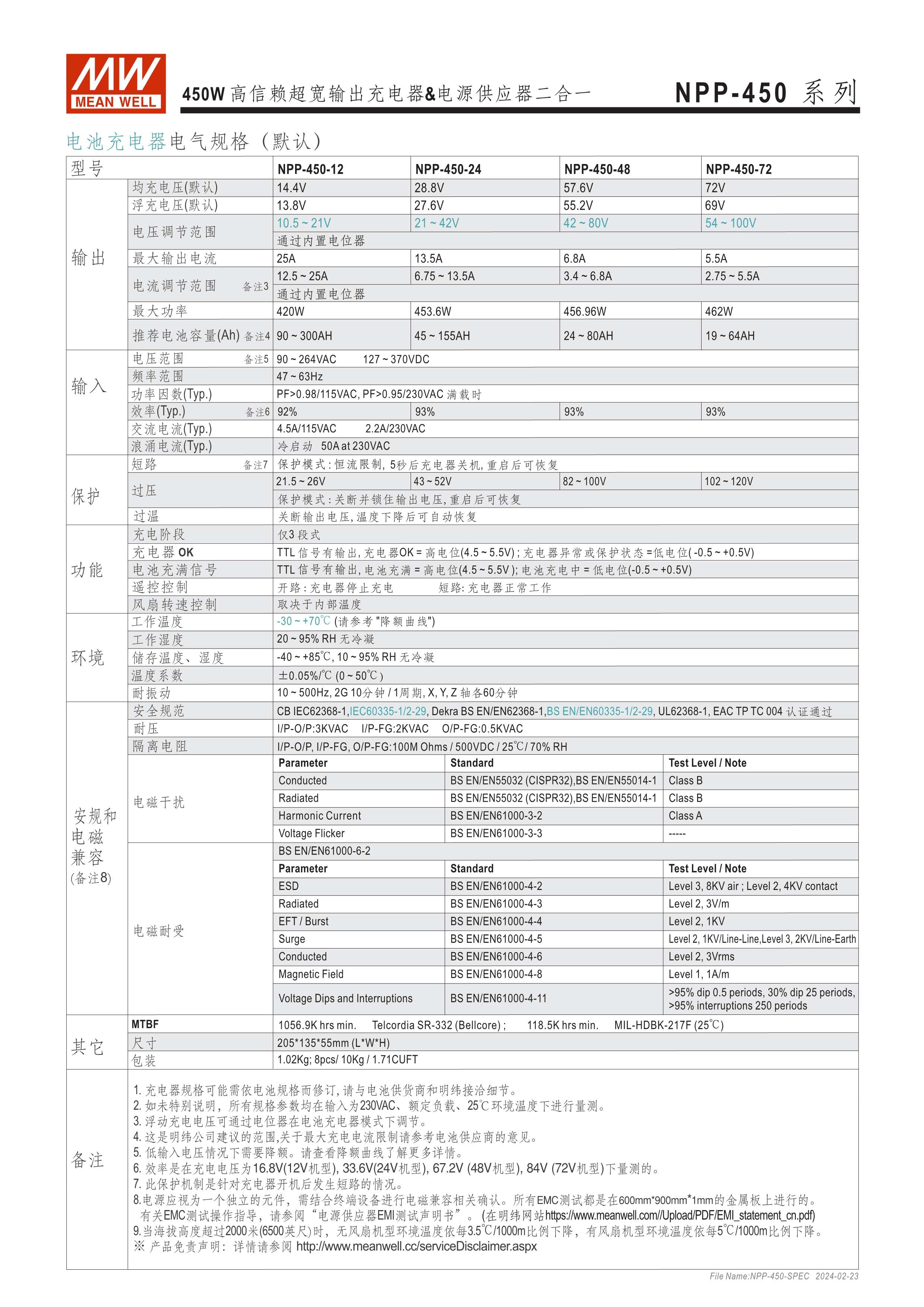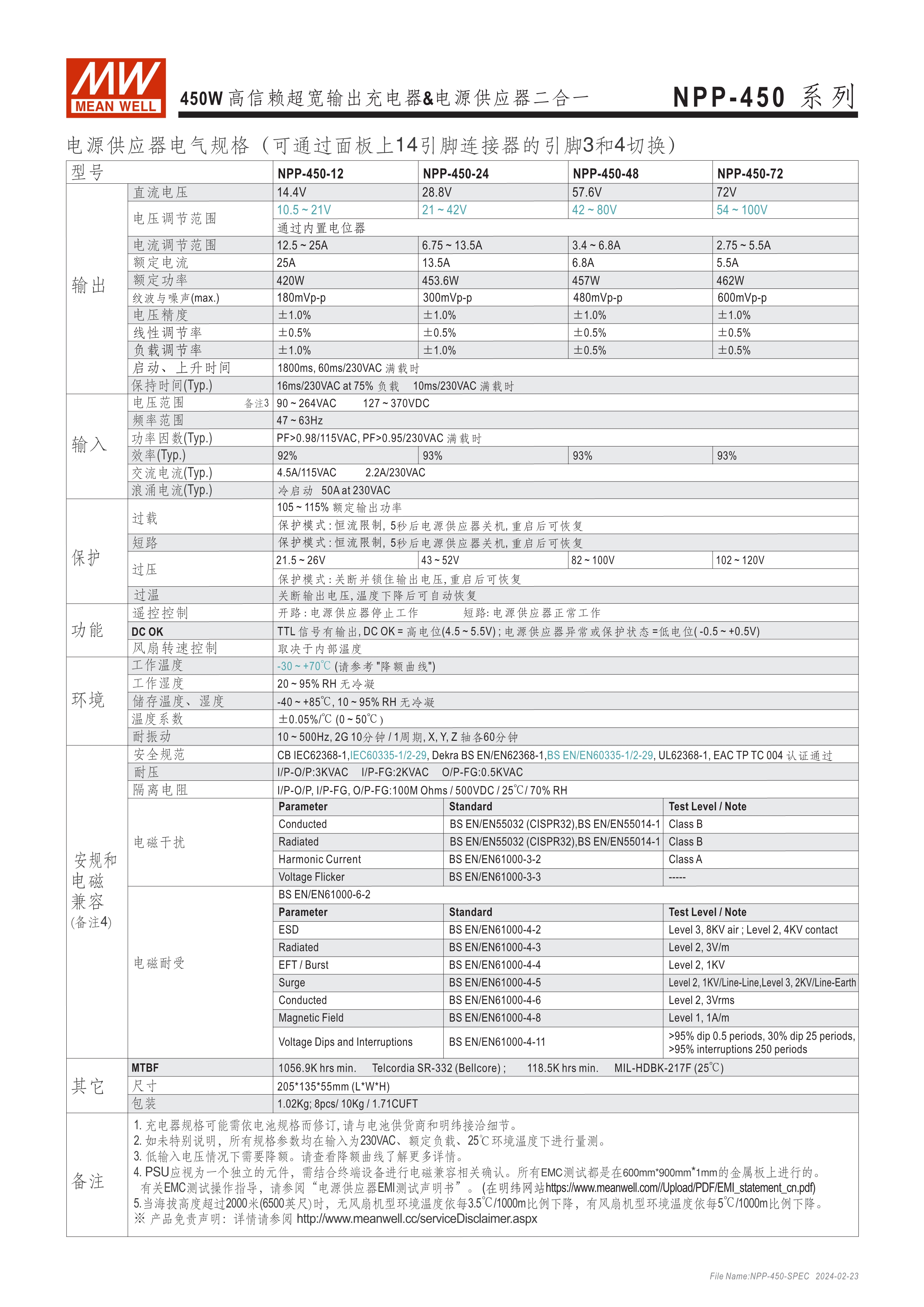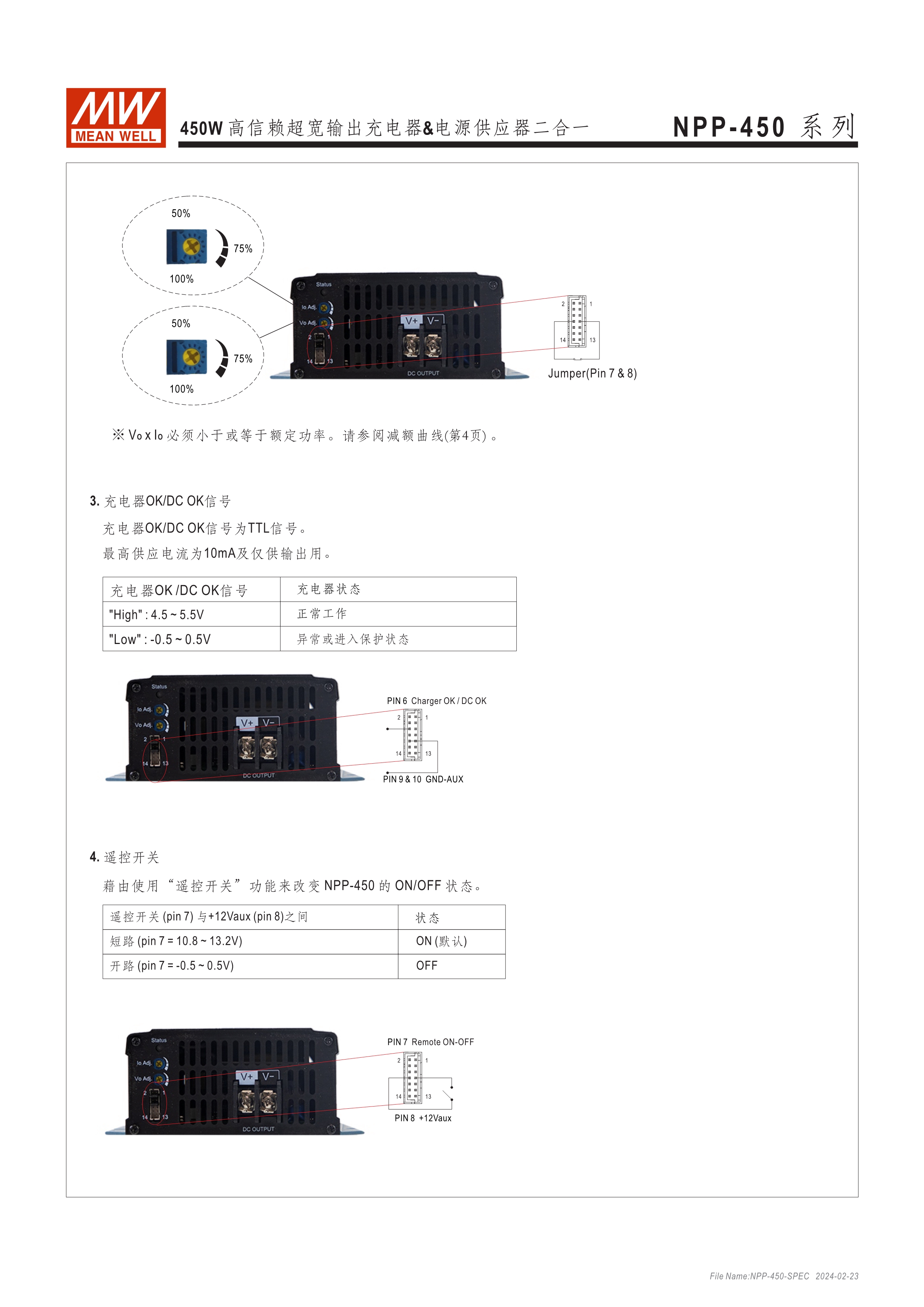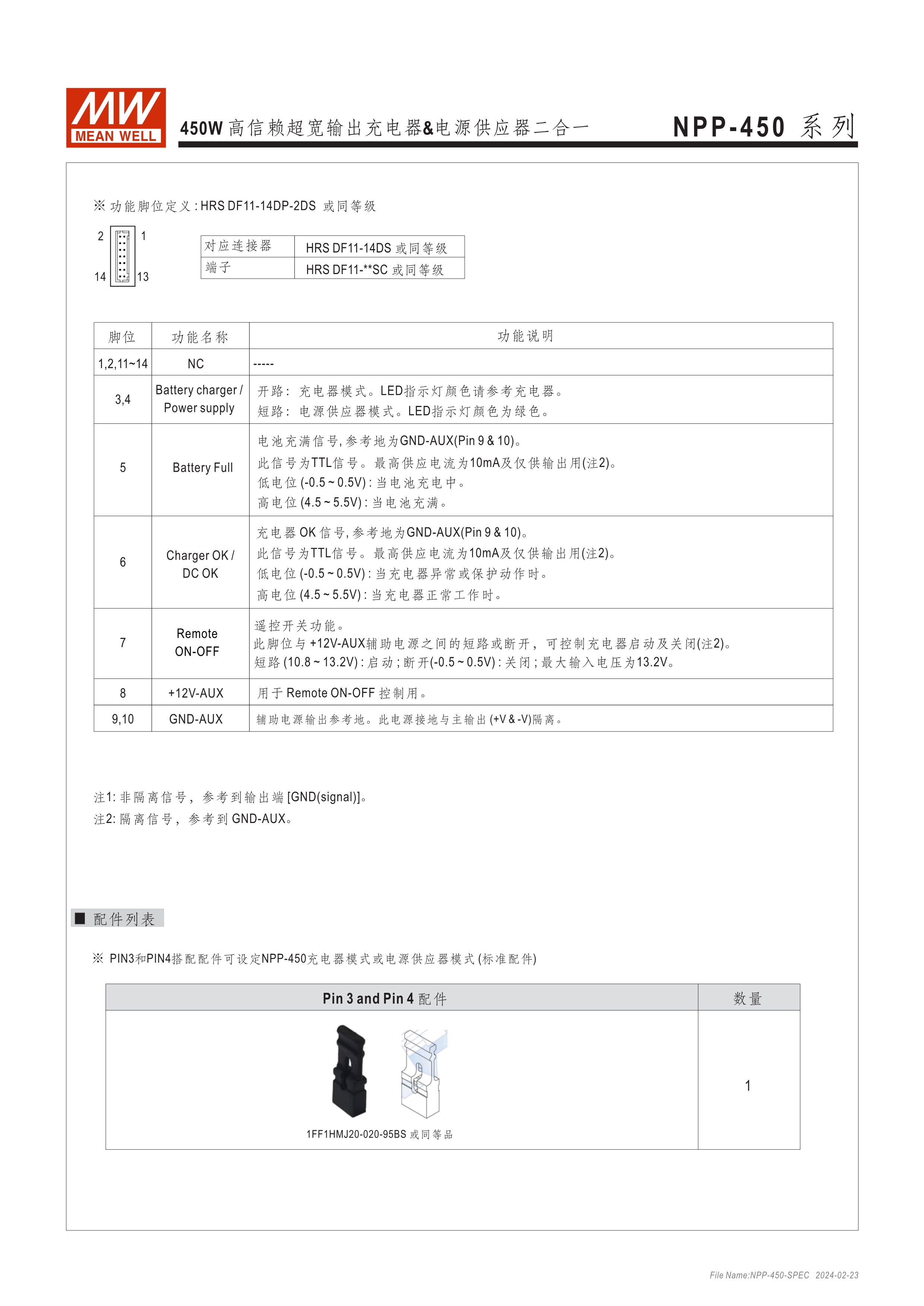 可彈性切換充電器或電源供應(yīng)器 3段式充電,僅適用鉛酸電池 可調(diào)輸出電壓 [由面板VR可調(diào)整10.5~21V, 21~42V, 42~80V, 54~100V(僅NPB-450)] 可調(diào)輸出電流 (由面板VR調(diào)整50~100%) -30~+70oC寬溫度,使用環(huán)境受限少 保護(hù)功能:短路、過壓、過溫度 可另購手提把手 (Order No.: Carry Handle) 通過UL/EN62368-1、IEC/EN62368-1/-2-29雙安規(guī)認(rèn)證 3年保固
