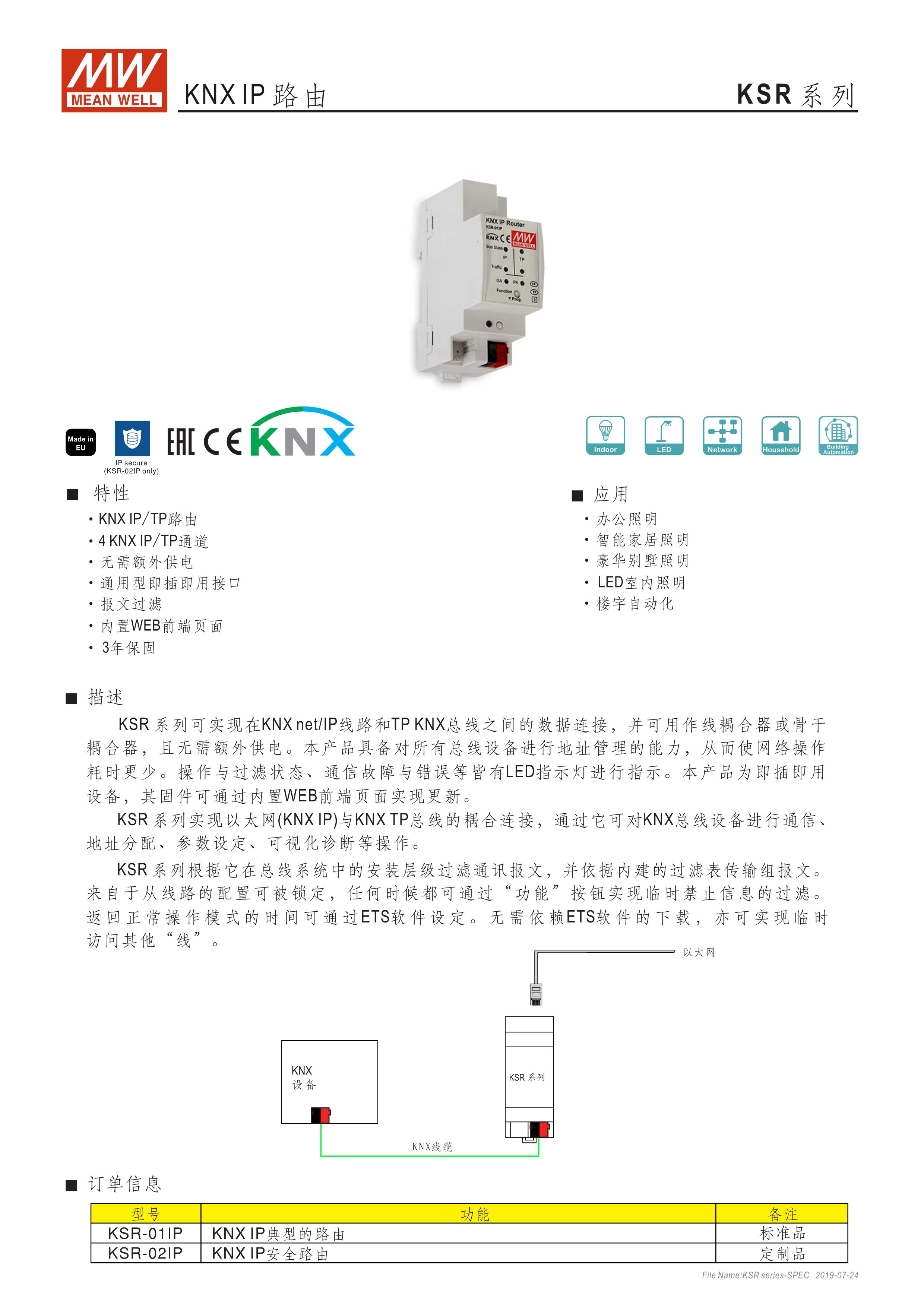 KNXIP路由器 4個(gè)IP / TP隧道 無需額外的外部電源 即插即用 信息過濾功能 內(nèi)置Web網(wǎng)頁監(jiān)控 3年保固