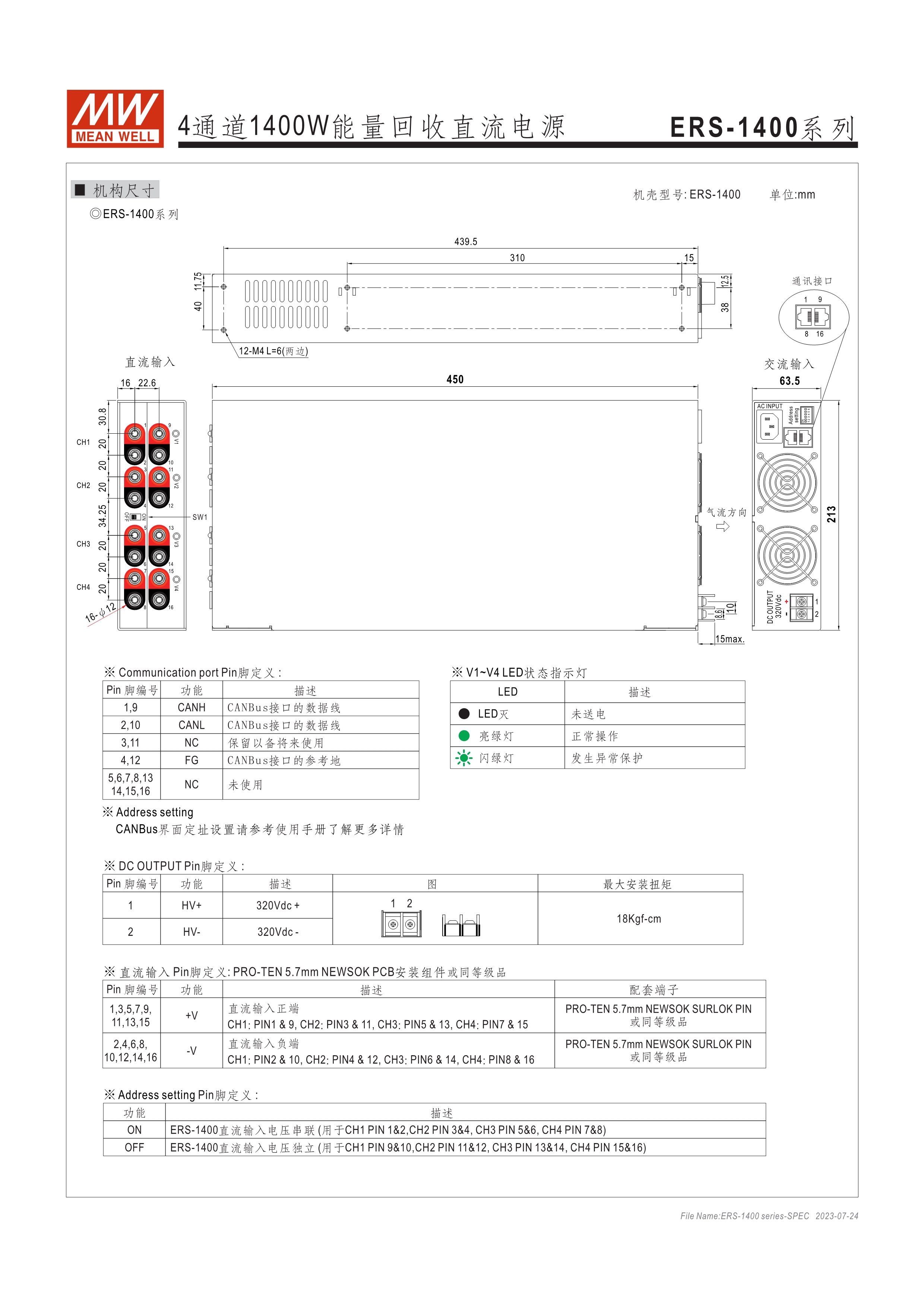 寬輸入電壓范圍10~60VDC/60~380VDC(視機型而定) 效率高達91% 靈活配置的模塊化設(shè)計 彈性的CC/CV/CP操作模式 通過CMU2A實現(xiàn)CAN總線協(xié)議遠程控制和監(jiān)控控制 可連接最多64臺ERS-1400系列 保護功能: 過電壓、欠電壓、過熱、通信錯誤 3年保固期