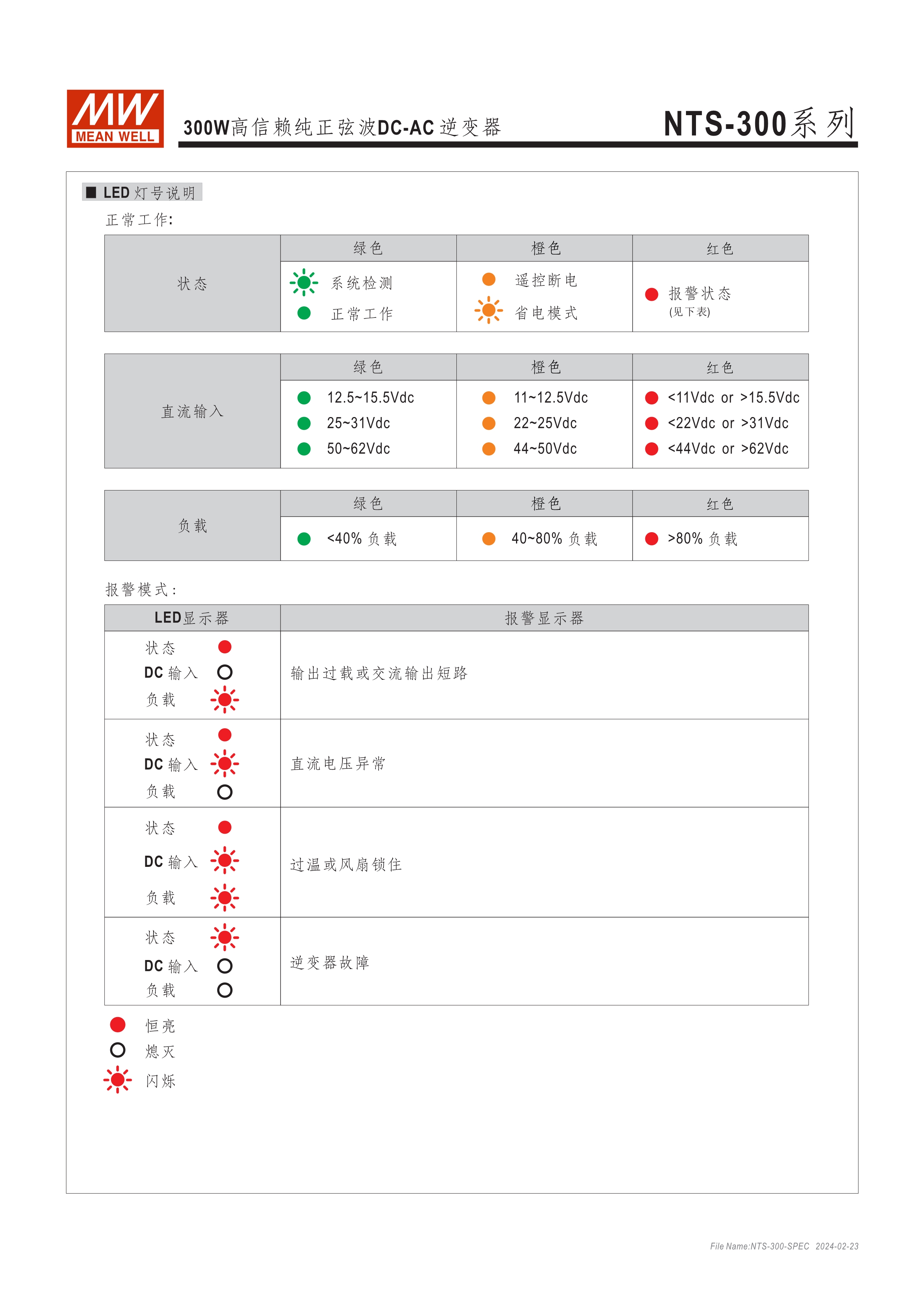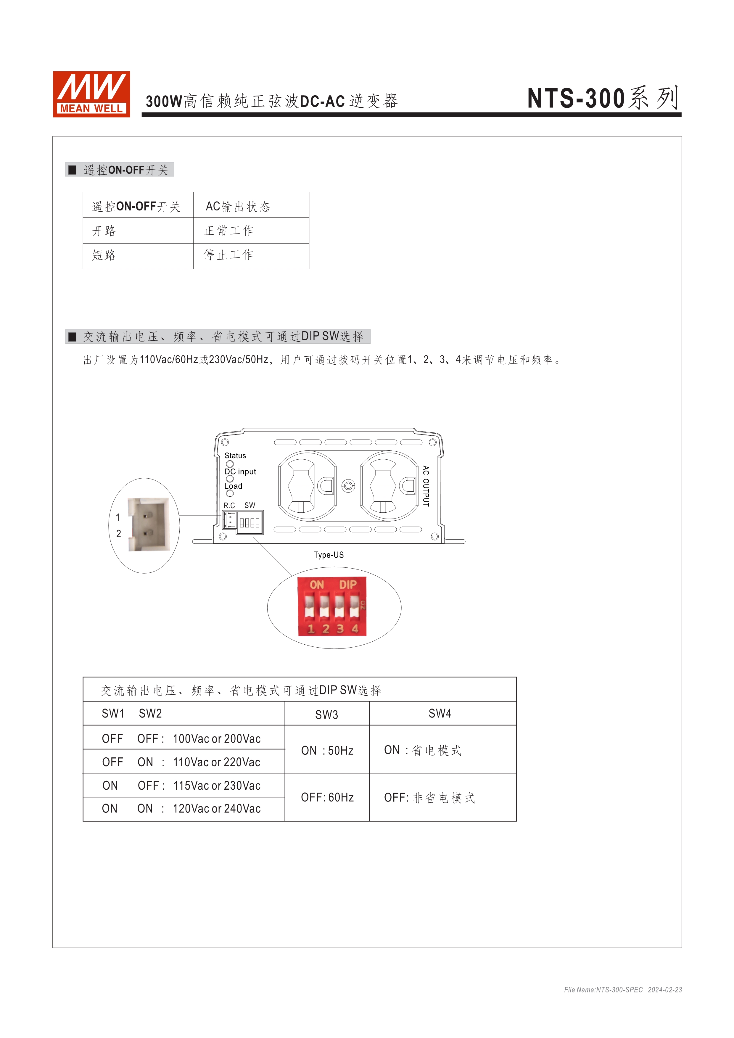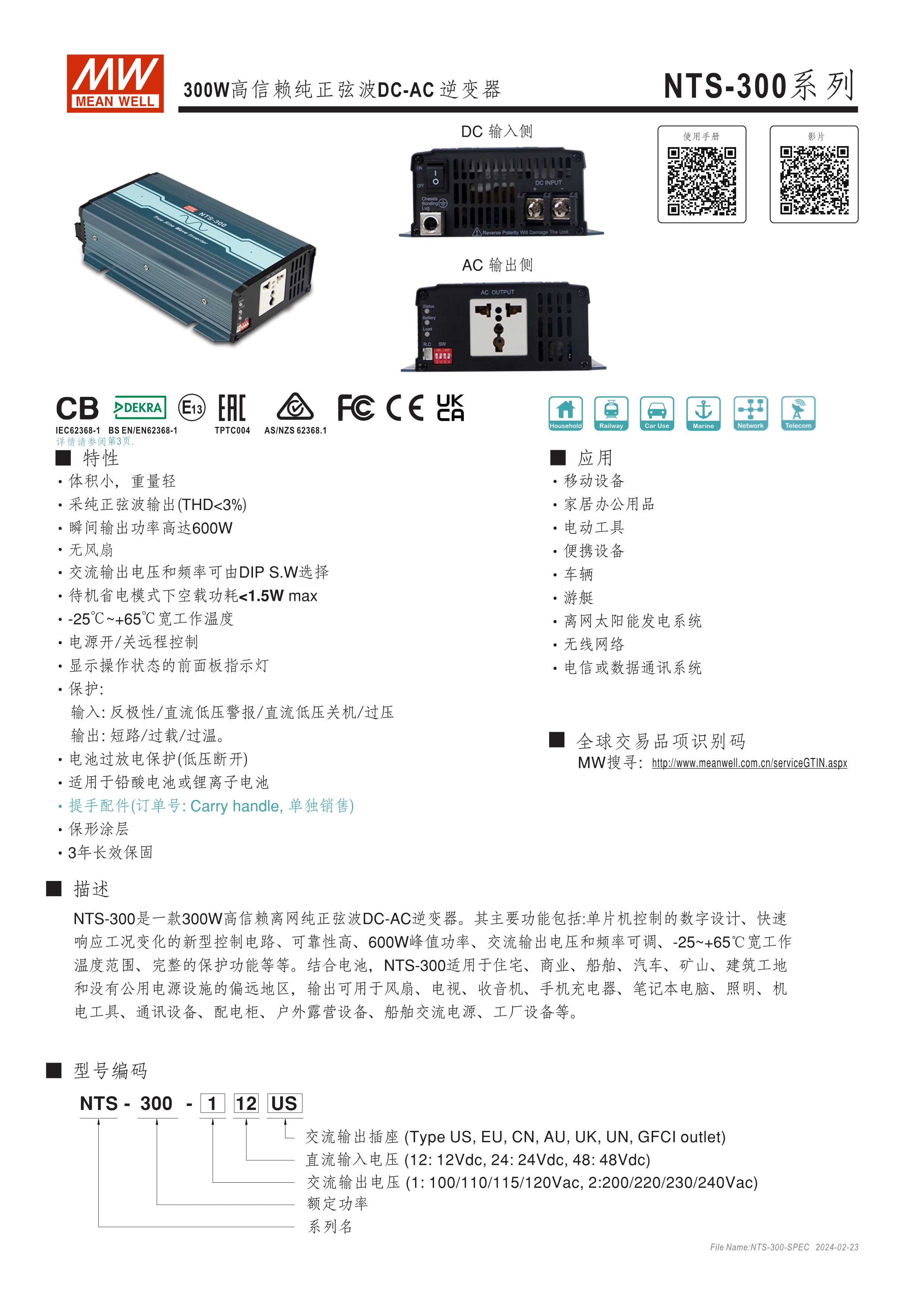 DC-AC純正弦波輸出 (THD<3%) 無風(fēng)扇設(shè)計(jì),效率最高達(dá)93%,可自然風(fēng)冷散熱 內(nèi)建DIP S.W可彈性自調(diào)AC輸出電壓、頻率、節(jié)能模式 多重智能保護(hù)功能: DC輸入側(cè) - 極性反接、電壓過低、電壓過高保護(hù) AC輸出側(cè) - 短路、超載、過熱保護(hù)