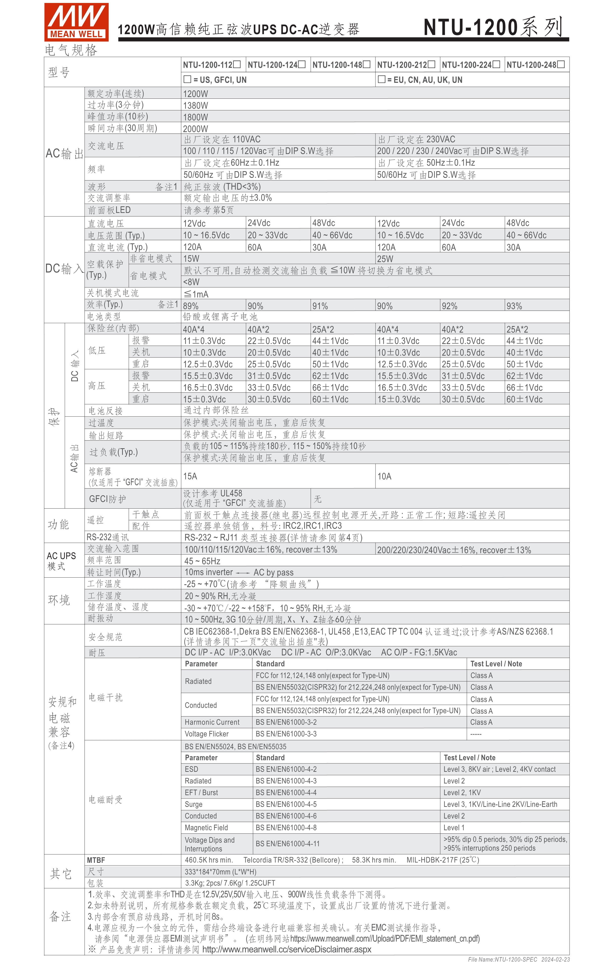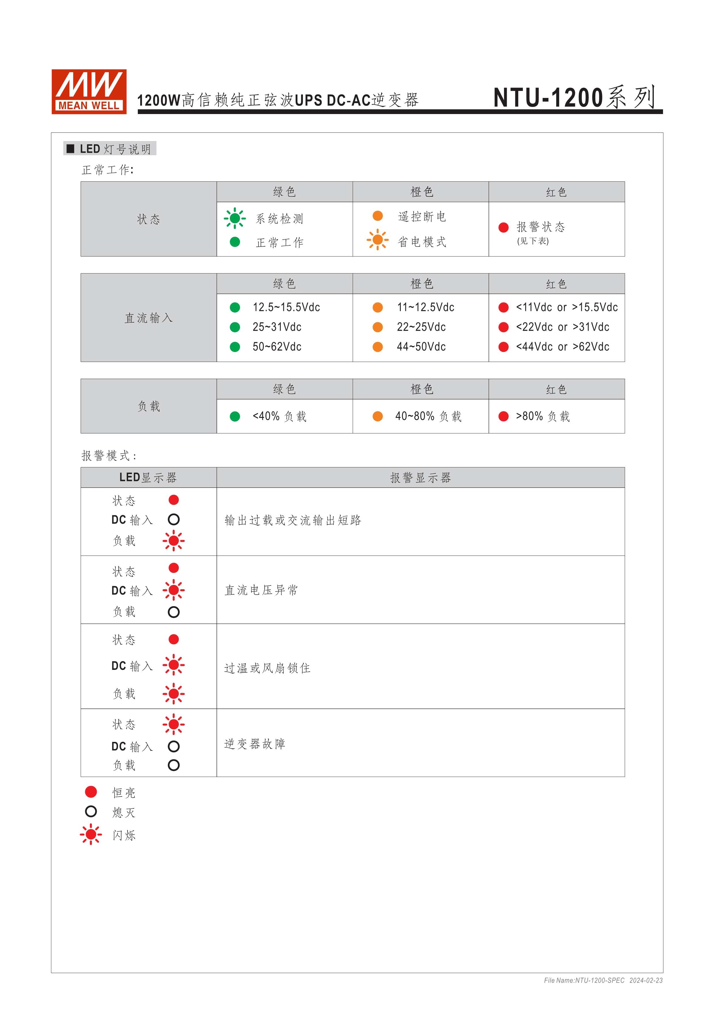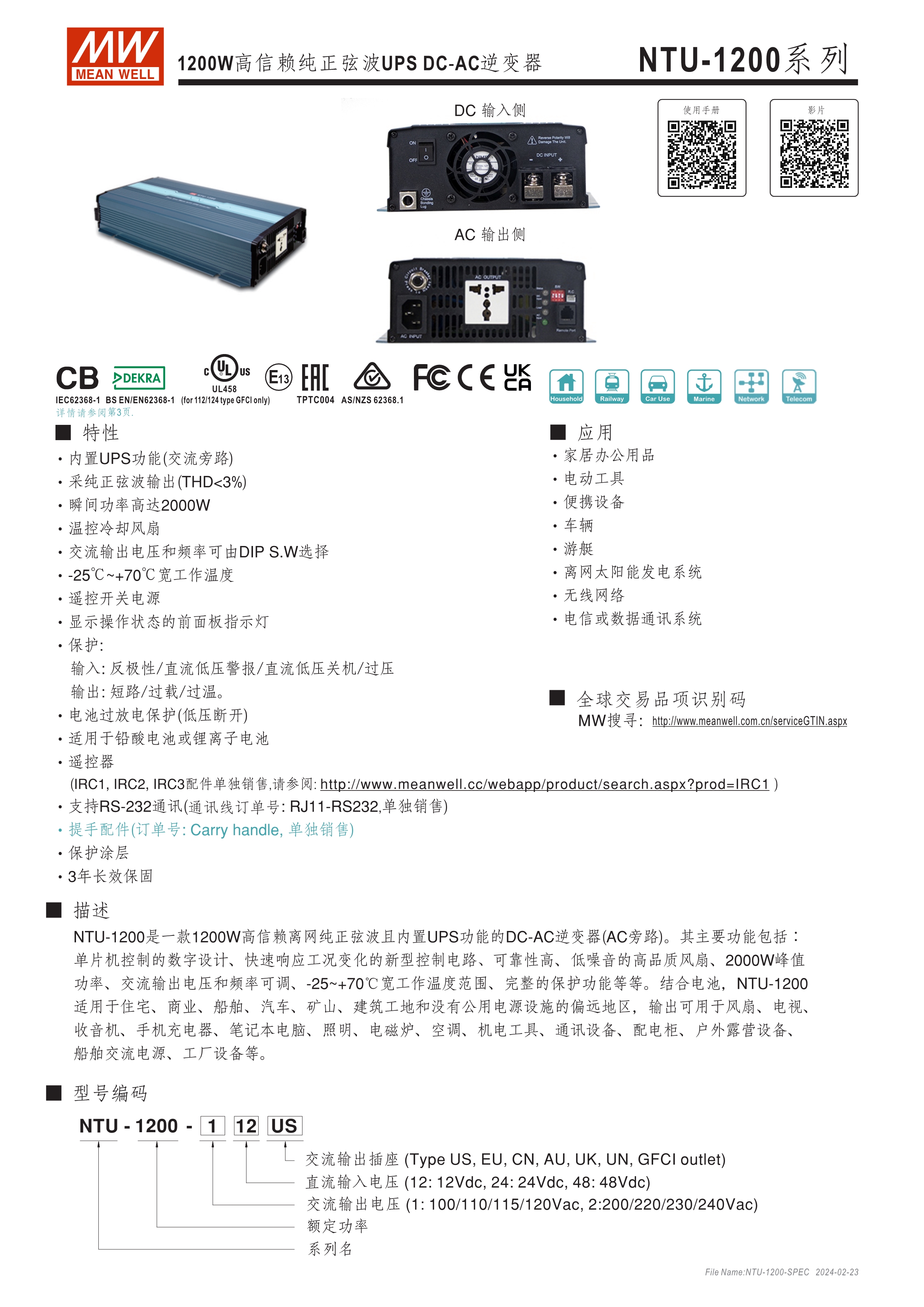 內(nèi)置UPS功能(交流旁路) DC-AC純正弦波輸出 (THD<3%) 可遠距遙控 (IRC1, IRC2, IRC3) 多重智能保護功能: DC輸入側(cè) - 極性反接、電壓過低、電壓過高保護 AC輸出側(cè) - 短路、超載、過熱保護