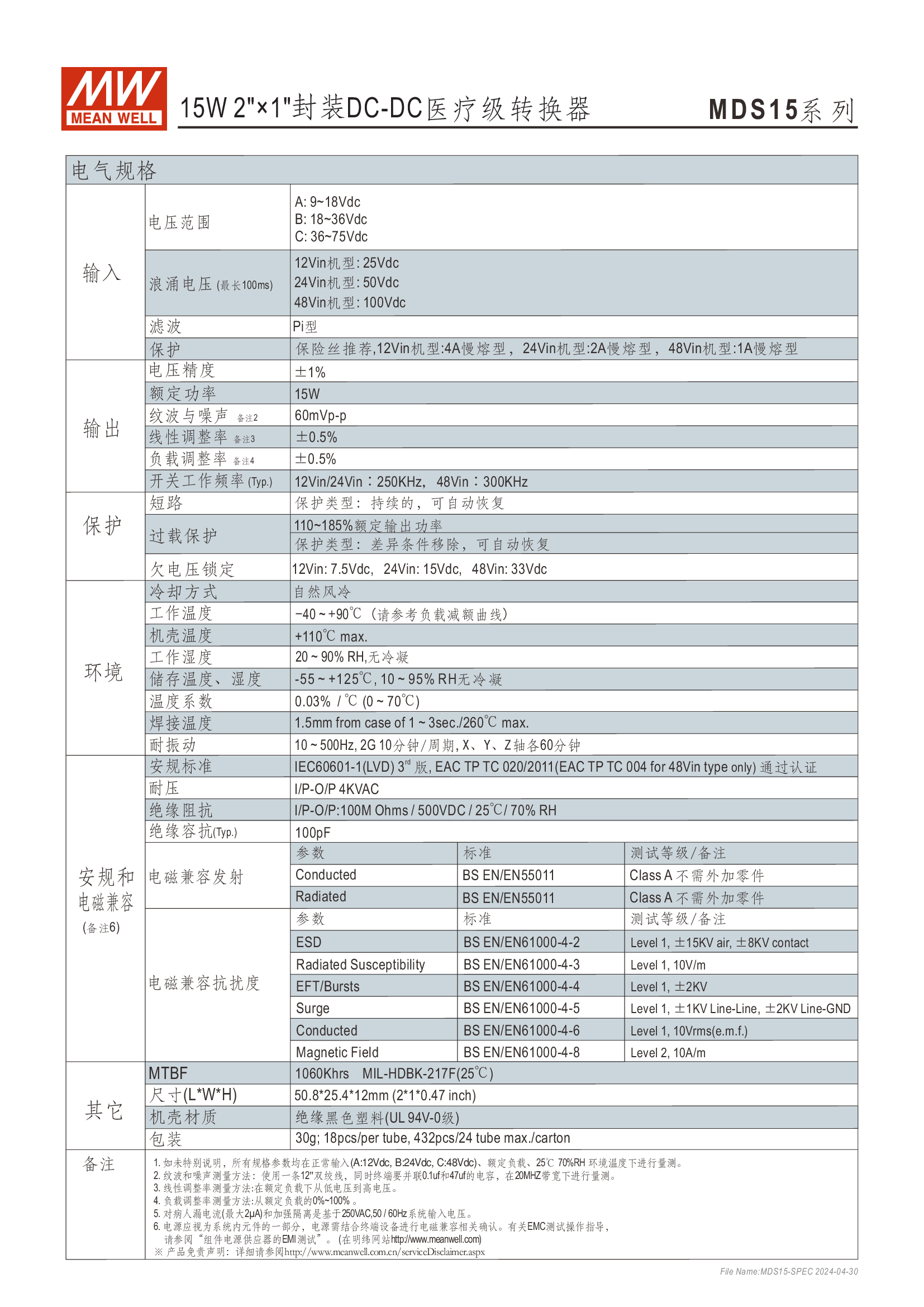 模塊型快選表 2" x 1" 單排封裝國際標(biāo)準(zhǔn)引腳 工作溫度:-40 ~ +90℃ (不需降載) 通過醫(yī)療認證ANSI/AAMI ES60601-1 (2×MOPP) 超低病患泄漏電流 < 5μA 3年保固期
